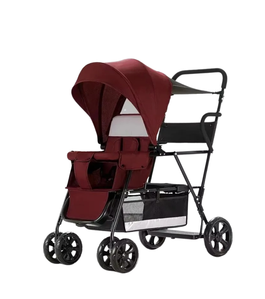 Poussette double tandem grand confort et haute adhérence